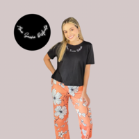 Pantalon flor naranja